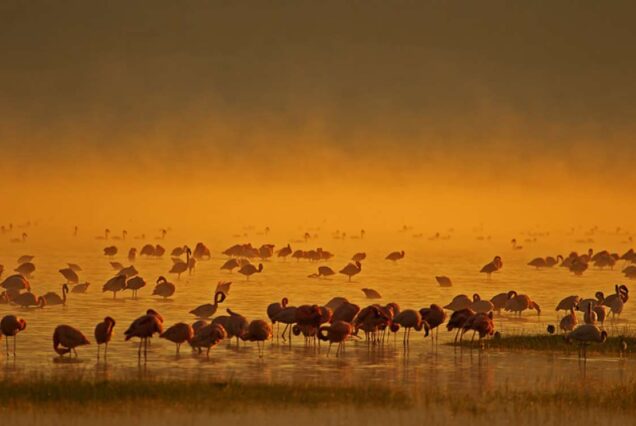 We’ll travel on to several Great Rift Valley lakes showing off a delightful assortment of birdlife. Lake Nakuru National Park not only hosts pelicans and flamingoes but also offers treats like rhino, large game, and fantastic escarpments, waterfalls, and acacia forests. To enjoy still more pink flamingoes, we’ll stop at Lake Bogoria National Reserve, with its colorful birdlife and dramatic hot springs and geysers.